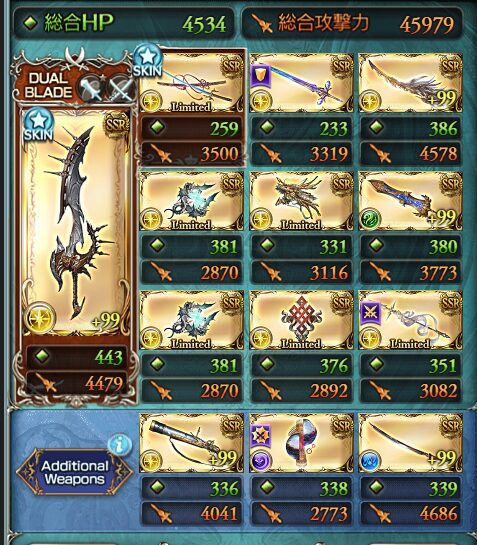 まだ作成していないのでエアプになってしまいますが、光古戦場肉集め編成のメイン武器で握っている方が多かった武器。