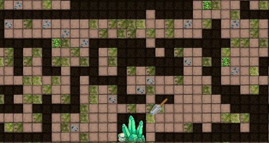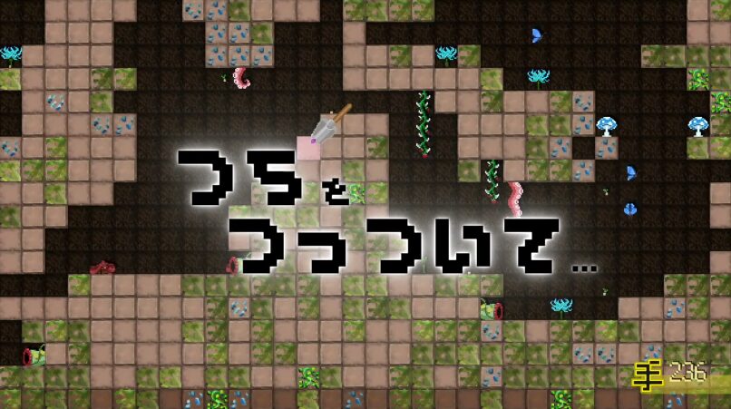 「ゆうなま」は、ツルハシで入り口から掘っていきダンジョンを形成する。