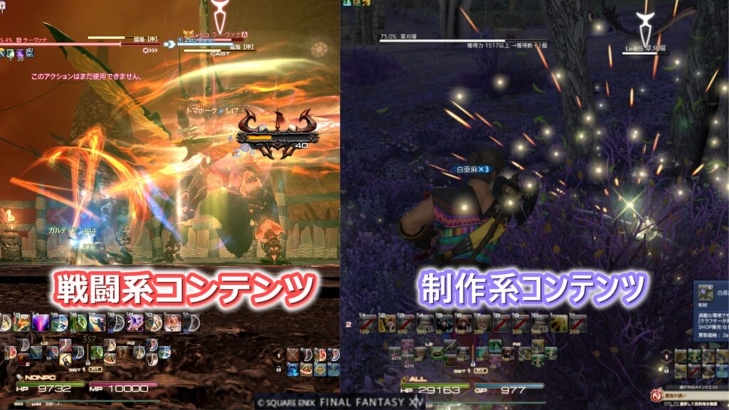 制作系コンテンツ(ギャザクラ)の大きく分けて二通りあります。