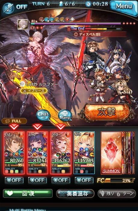 攻撃行動6回は、サンorユエル2アビ3回目でOKです。