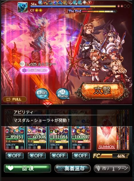 解除不可になるので、フェニー3を使用後FCゲージのため奥義ONで攻撃して抜けます。