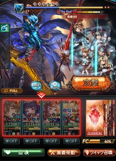 今回はサン使用+FCゲージが足りていないので奥義ONで攻撃。
